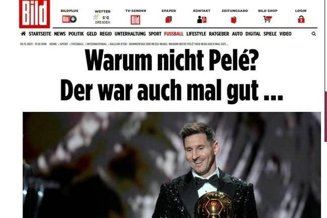 德国《图片报》的大标题极具讽刺意味:“为什么不把金球奖给贝利?他也曾经很优秀”。